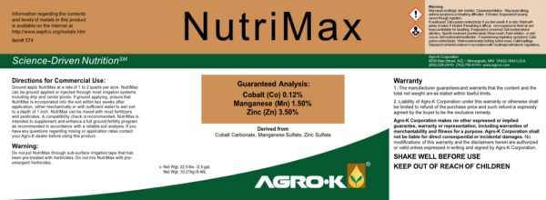 NutriMax is one of the best, most efficient ways to improve soil biology and root zone environment. NutriMax improves soil function in all cropping systems resulting in better root growth and plant health and increased soil nutrient availability and efficiency.