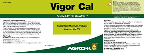 Agro-K’s Vigor-Cal is a foliar calcium spray derived from calcium carbonate. A series of proprietary manufacturing processes are used to separate the calcium from the carbonate molecule and link it to a polysaccharide molecule creating sugar based nutrient product. This process creates a calcium material that can quickly penetrate a variety of plant tissue – leaves, emerging buds and fruit skin. Nutrient uptake happens directly through the cell wall and via stomata.