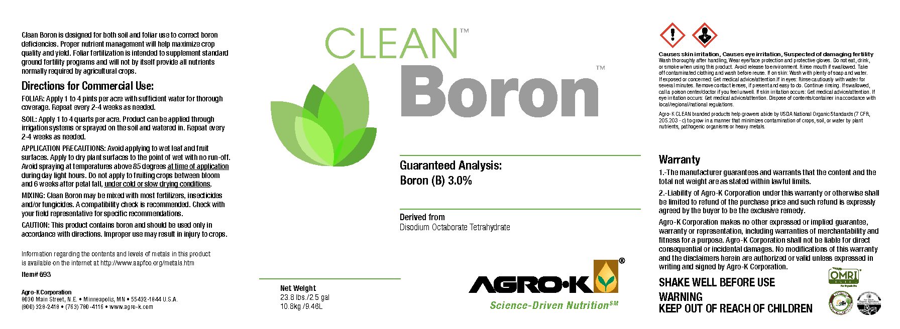 CLEAN BORON is designed for foliar application to correct boron deficiencies. This organic boron combined with Agro-K’s proprietary fermentation manufacturing process produces a boron fertilizer that is soft on plant tissue and rapidly adsorbed to meet the nutritional needs of a wide variety of crops.