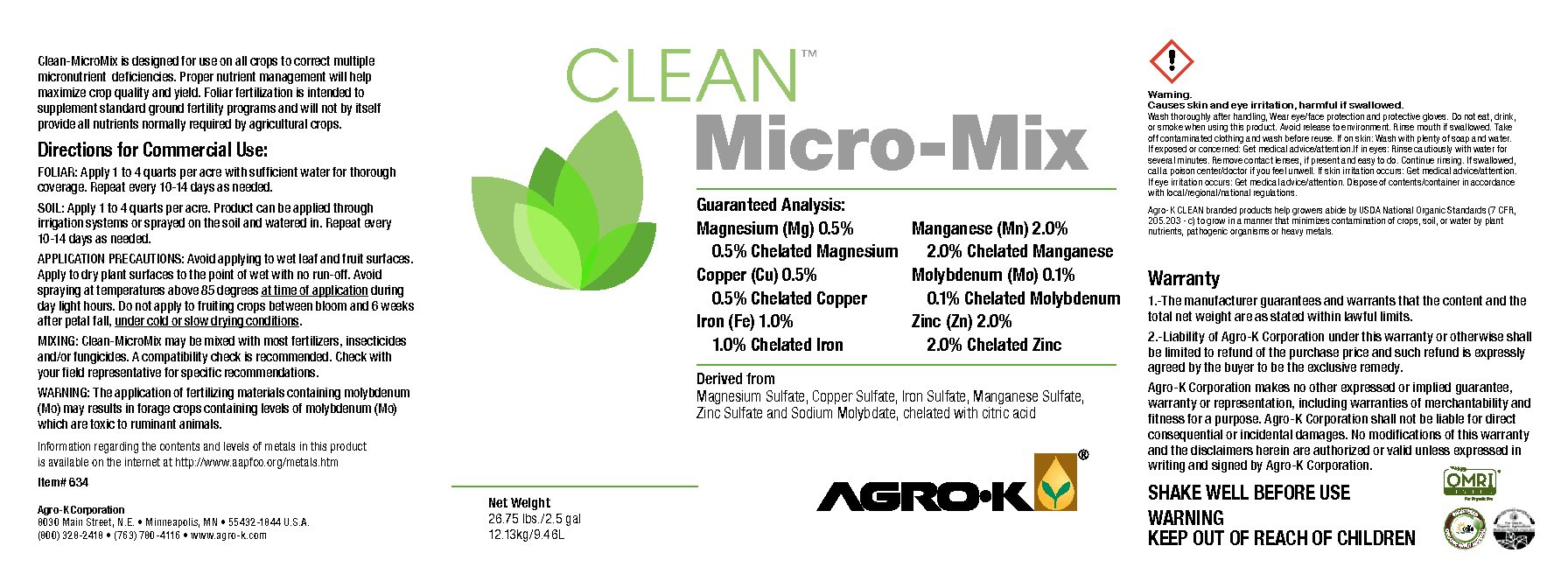 well as fruit quality and overall plant health. CLEAN MICRO-MIX is a versatile micronutrient blend designed for rapid and complete foliage penetration helping growers with multiple nutrient deficiencies correct issues quickly while meeting peak nutrient demand timing.