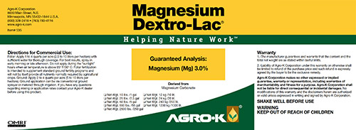 Agro-K’s Magnesium Dextro-Lac®, a foliar micronutrient, is derived from magnesium carbonate. A series of proprietary manufacturing processes are used to separate the magnesium from the carbonate molecule and link it to a polysaccharide molecule creating a nutrient product linked to a sugar base. The term Dextro-Lac® is used to convey the process and resulting product.